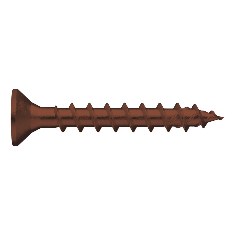 - Maggiore trasmissione della forza, anche nei legni duri, grazie alla geometria rinforzata ed asimmetrica del fianco del filetto a passo grosso
